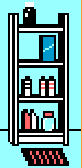 棚にはいろんなアイテムがある。上の黒いびんを取ろうとすると落として割れ、中の薬品がこぼれるが気にしない。 クリアに必要なアイテムは「ふるーつし゛ゅーす」と「ひ゛ん」のみ。それ以外は特に必要ない。が、取りたいので取るよねー。ちなみに奥のドアはまだ開かない。