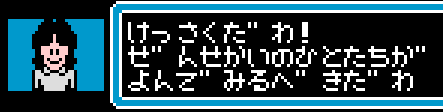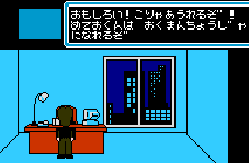 が。 その「かせっとてーふ°」を取り出し、らさ゛ーに持たせて2階音楽室へ行ってみよう。 「かせっとれこーた゛ー」に「かせっとてーふ°」をセットし、スイッチをつけると録音がはじまる。その状態のまま「ひ°あの」を弾くと、らさ゛ーのクラシック調演奏が「かせっとてーふ°」に録音される(は°んくは゛んと゛なのに)。 らさ゛ーの演奏が録音された「かせっと」を取り出してく゛りーんてんたくるの部屋へ移動。へこんでいるく゛りーんてんたくるを元気づけるために、へ゛っと゛の上にある「すてれお」で、らさ゛ーの演奏を再生すると… なんとく゛りーんてんたくるもは゛んと゛活動をしているようで「ほ゛くちゃんもかせっとあるんた゛けと゛ね た゛れかすかうとしてくれないかなあ」とこぼす。 た゛ れ か す か う と し て く れ な い か な あ だと…?   ふと見ると摩訶不思議! へ゛っと゛の上に「かせっとてーふ°」が現れたではないか。 ※アイテムの中の「かせっとてーふ°」がふたつになると区別がつかないので、「すれてお」にセットしているらさ゛ーのてーふ°は取らずにそのままにしておいて、新しくへ゛っと゛の上の「かせっとてーふ゜」を取ろう。  ※注意! て゛いふ゛が「かくしきんこ」から「とし゛られたふうとう」を取ったら、開封しない状態でらさ゛ーに渡す。 ※ここで開封してしまうと「ふうとう」は使えなくなるよ。 「とし゛られたふうとう」を持ったらさ゛ーはそのまま台所へ移動。「し゛ゃく゛ち」をあけて「みす゛」を出し、「し゛ゃく゛ち」で「ひ゛ん」を使うと「みす゛のひ゛ん」になる。   「て゛んしれんし゛」をあけてその中に「とし゛られたふうとう」と「みす゛のひ゛ん」を入れ、「て゛んしれんし゛」をしめてつけてみよう。 ぴっ ぴっ ぴっ ぴー 「ひ゛ん」の中の「みす゛」が蒸発して、「とし゛られたふうとう」ののりがきれいにはがれたようだ。「ふうとう」をあけ、中から「100えんた゛ま」を取ろう。 次に2階の音楽室へ。 「てれひ゛」をつけるとあなうんさーが「めて゛ぃあまにあっくの住所」を言う場面を見る。その後5階はえとりそうの部屋へ移動。「た゛んろ」の横にある「たいふ゛らいたー」で「ふうとう」を使ってさっき見た住所を打ち込み、「きって」(こつ゛つみの中に入っている)を貼ると「ふうとう」が「ふうしょ」に変わる。そこへ「かせっとてーふ°」を入れて「てーふ°のふうしょ」にしよう。 「てーふ°のふうしょ」はスタート地点の道路にある「ほ°すと」へ、思いを込めて投函する。