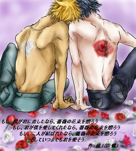 TOPではサスケが白薔薇をナルトが赤薔薇を持っていますが、上のは贈られた